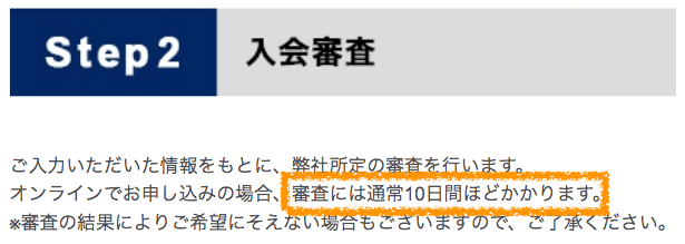 アメックスの公式サイト上には、審査は10日ほどかかると書かれています。