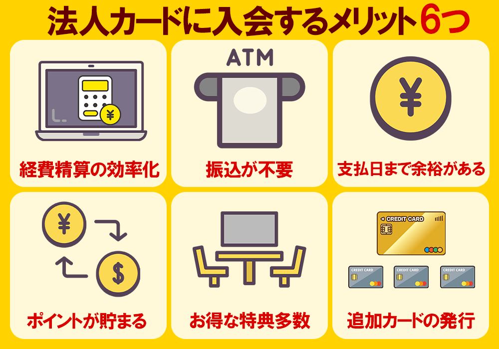 法人カードには経費精算の効率化や経費の振り込みの手間がかからないなど、多くのメリットがあります。