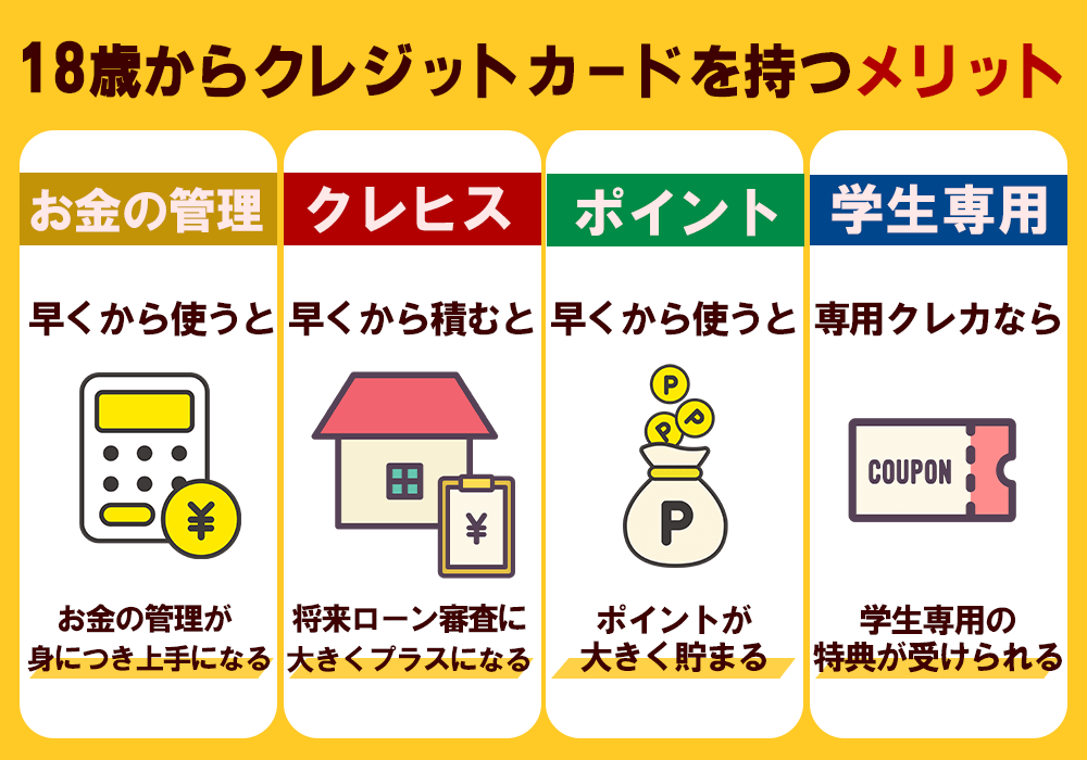 早いうちからクレジットカードを持ち計画的に使えるようになれば、お金の管理や使い方も上手になるため、可能であれば18歳から持つのがおすすめです。