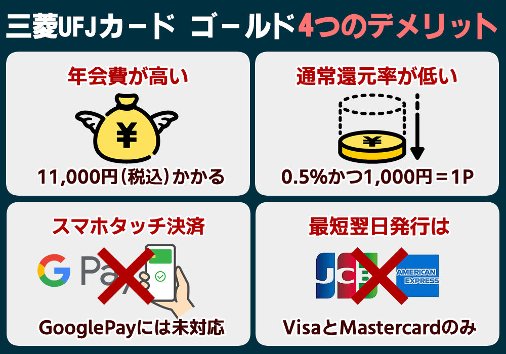 - 3 三菱UFJカード ゴールドのデメリット4つ
