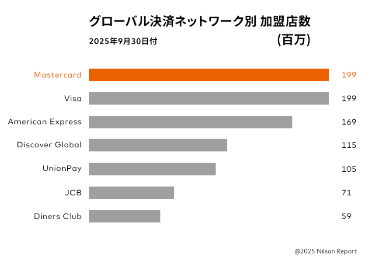 JCBはアジア圏や日本人が多く訪れる観光地(ハワイ・グアム等)には強いものの、世界的な加盟店数ではマスターカードに大きく劣ります。