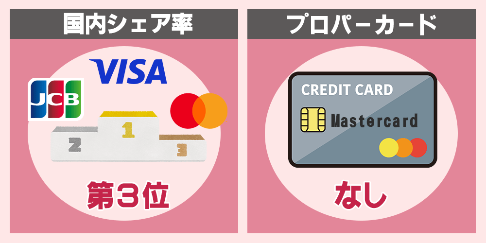 一方、マスターカードにはプロパーカードが存在しないため、必ずどこかのカード会社(楽天・三井住友など)が発行するカードを選ぶ必要があります。