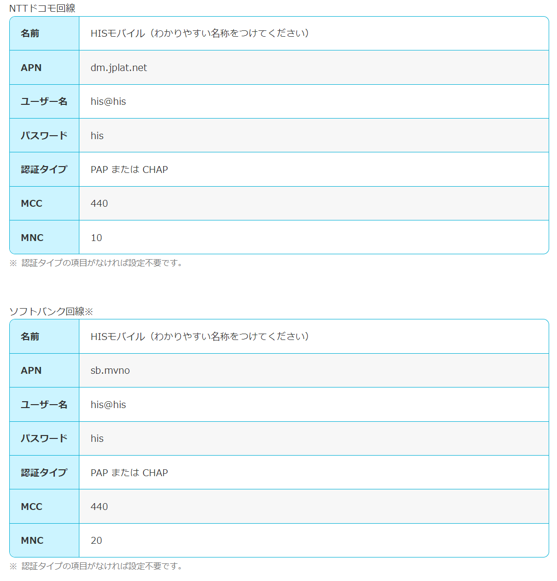 Androidでは設定アプリの「モバイルネットワーク」内にあるアクセスポイント項目を開き、以下の情報を入力して設定を保存・適用すればOKです。