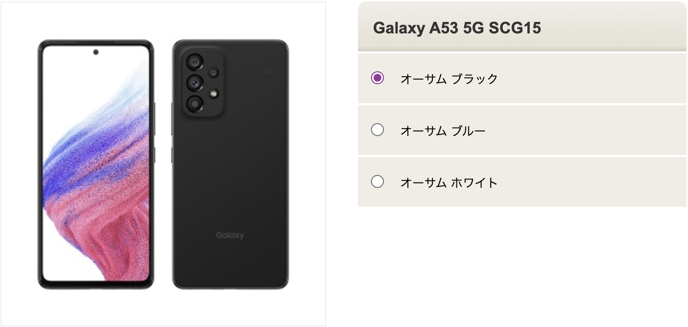 - Galaxy A54 5G SCG21【2023年5月25日発売】