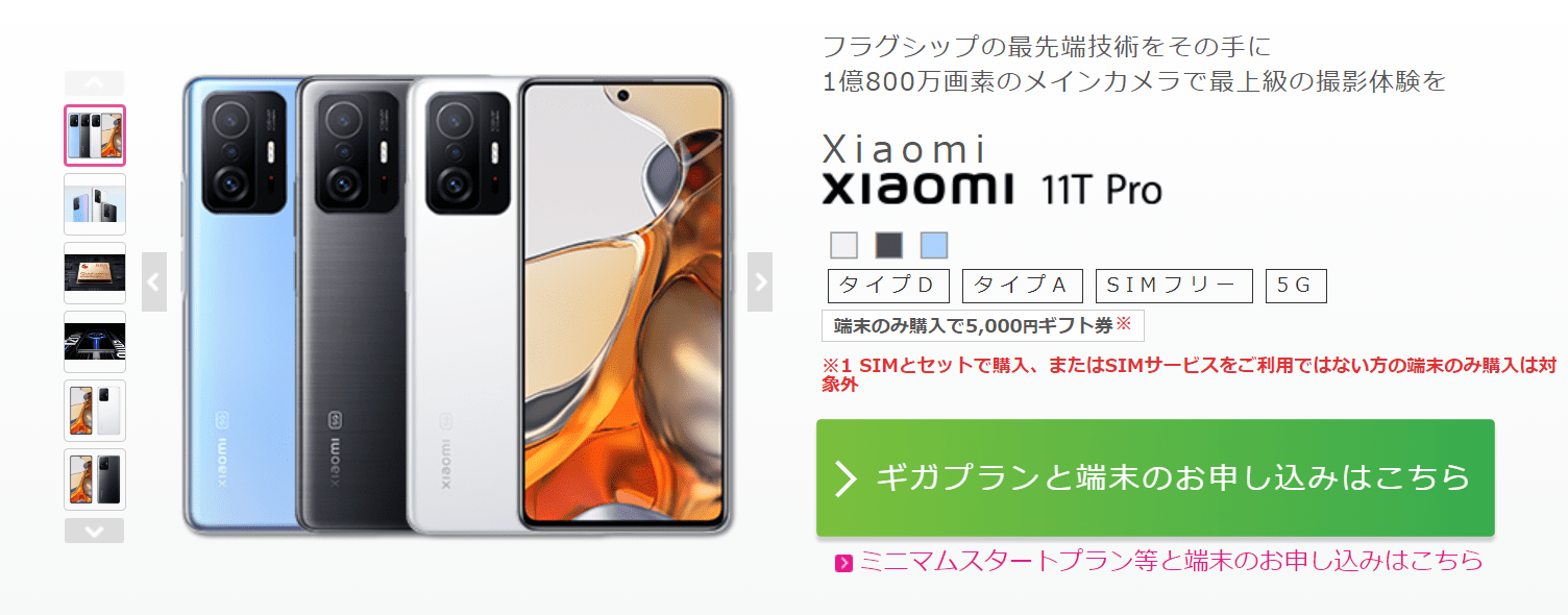 2021年における最高クラスの性能を持つCPU・Snapdragon 888を搭載しているのに、Xiaomi 11T ProはIIJmioで3万円以下から購入できてしまいます。