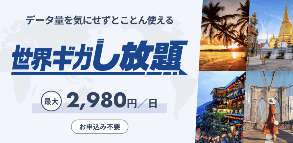 海外ギガし放題は1日最大2,980円で自由に通信できる使い放題サービス