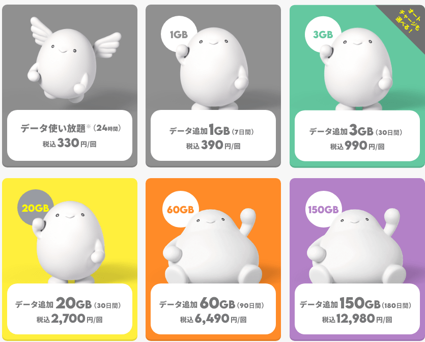 そのため、基本的には「データトッピング」を必要に応じて購入して、データ通信容量を増やしていくことになります。