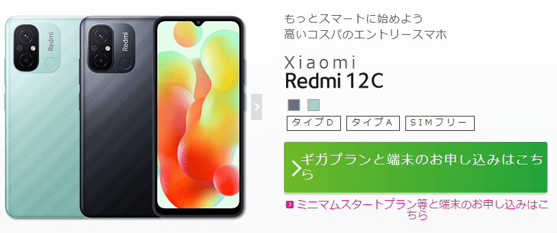 出典:IIJmio公式サイト(https://www.iijmio.jp/device/xiaomi/redmi12c.html)