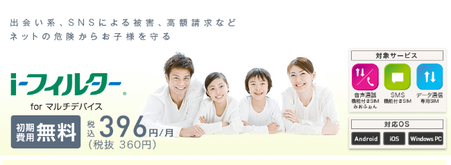 「i-フィルター」は月額396円ですが、最大2ヶ月間は無料で利用できますよ。