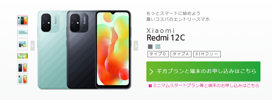 出典:IIJmio公式サイト(https://www.iijmio.jp/device/xiaomi/redmi12c.html)