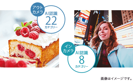 - ダブルレンズカメラとAIで、きれいな写真を撮影可能
