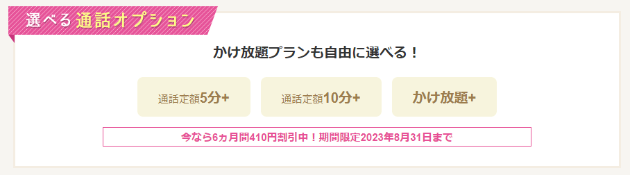 5分、10分、かけ放題と豊富な通話オプションがあるので自分の通話頻度に応じたプランを選択できます。