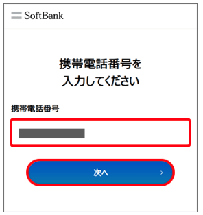 自分の携帯番号と4桁の暗証番号を入力し、次へをタップ。