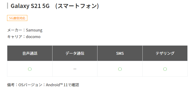 例えばドコモのGalaxy S21の場合、LINEMOで使われている周波数帯のBand8や11に対応していません。