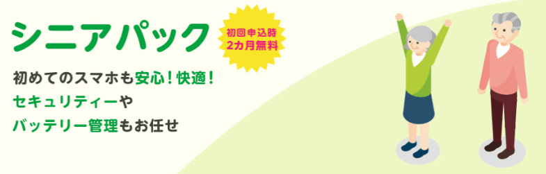 mineoにはシニアパックというサービスがあり、月額料金は220円・初回申込時は2ヶ月間無料で使えます。