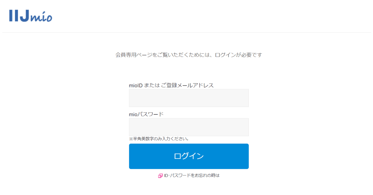 お手元に、mioIDまたはメールアドレス・パスワードを準備した状態で、「会員ページ」にアクセスします。