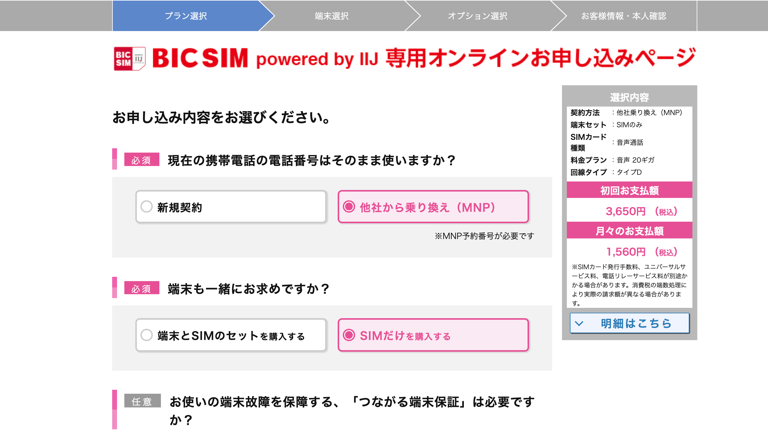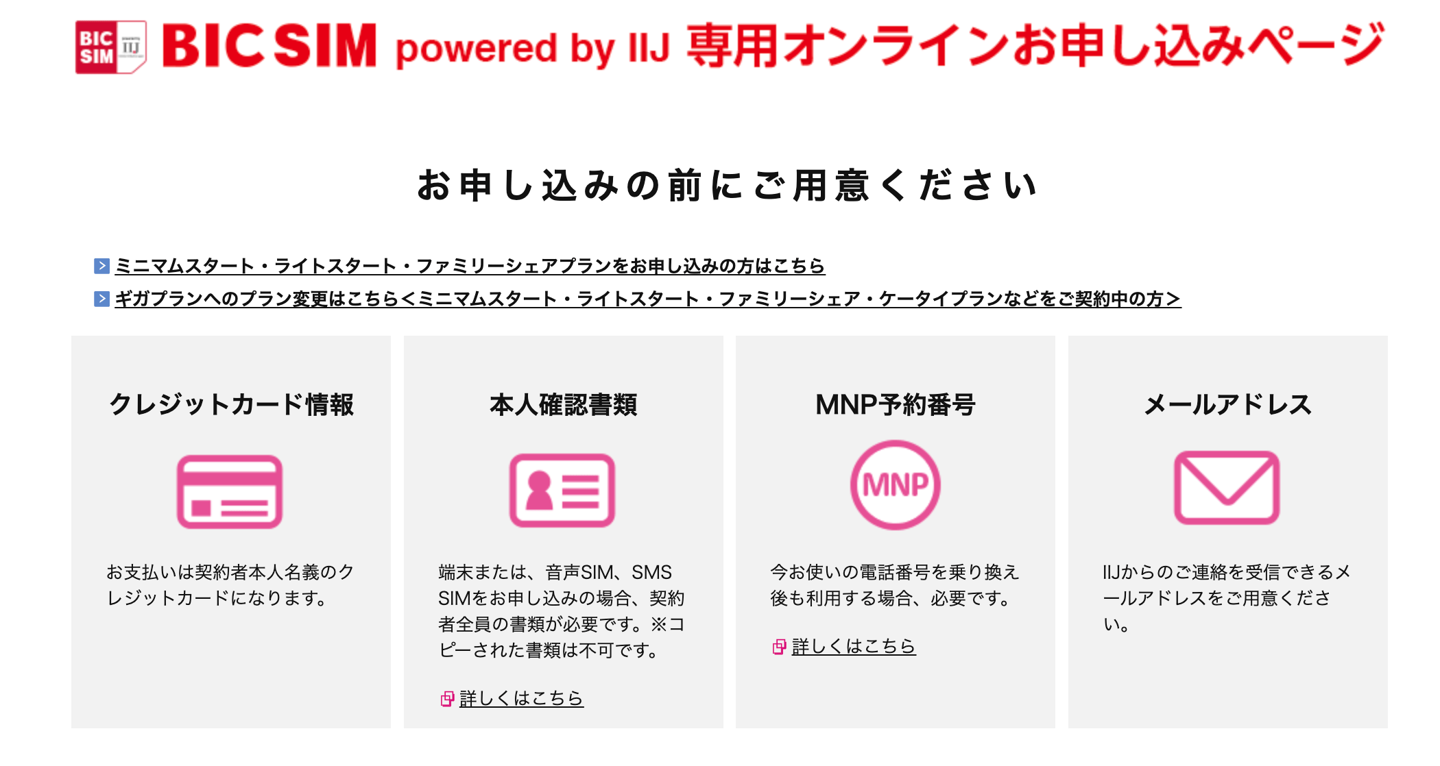 上記4つの準備ができましたら、BIC SIM公式サイトの申し込みボタンから申し込みフォームにアクセスしましょう。