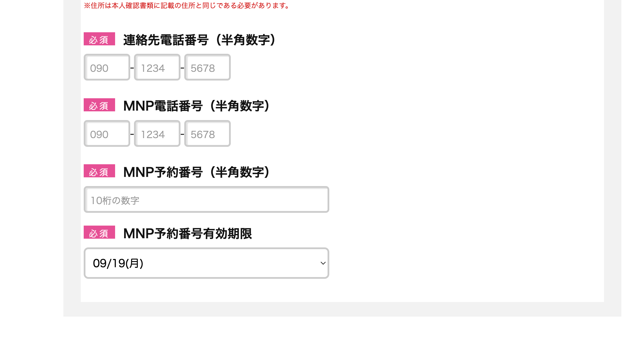 この際にMNP番号を入力する場面が出てくるので、事前に準備いておくとよいでしょう。
