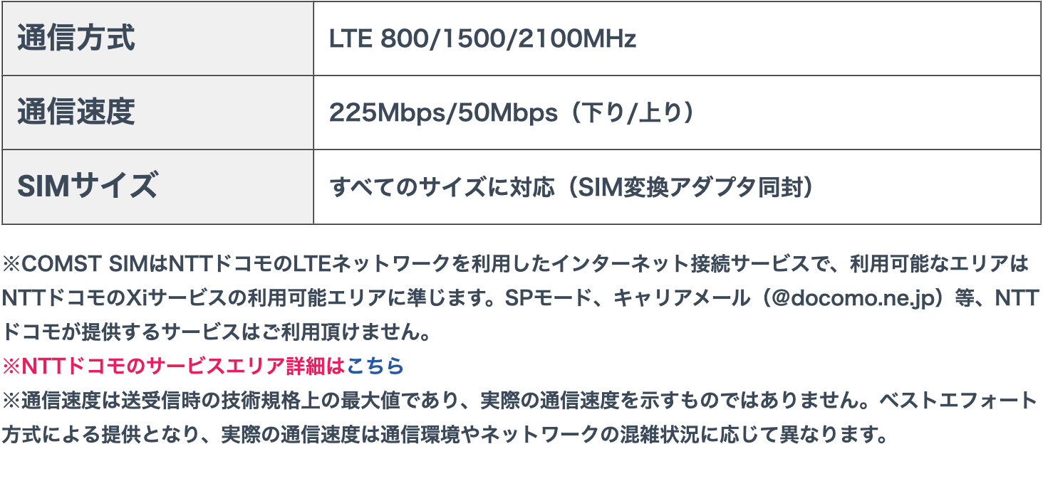 COMST SIMはNTTドコモのXiサービスエリアと同じ回線を使用しています。