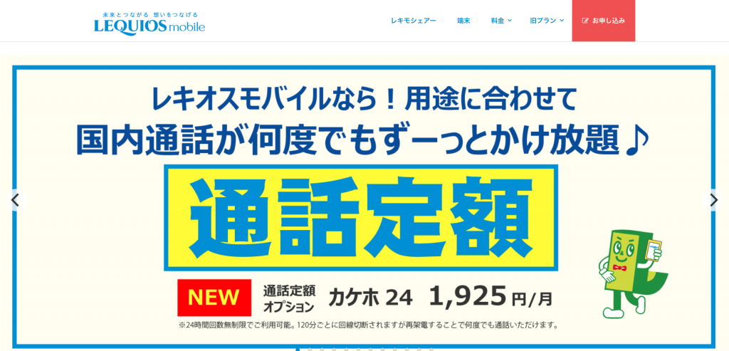 株式会社レキオスが運営しており、従量課金制・定額・使い放題などさまざまなプランが用意されている万能な格安SIMとしてサービスを展開しています。