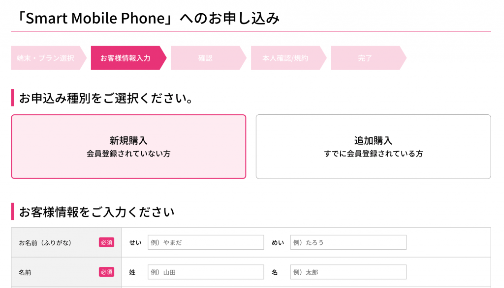 画面の案内に従い、自分が利用したいプランの項目を選択していきましょう。