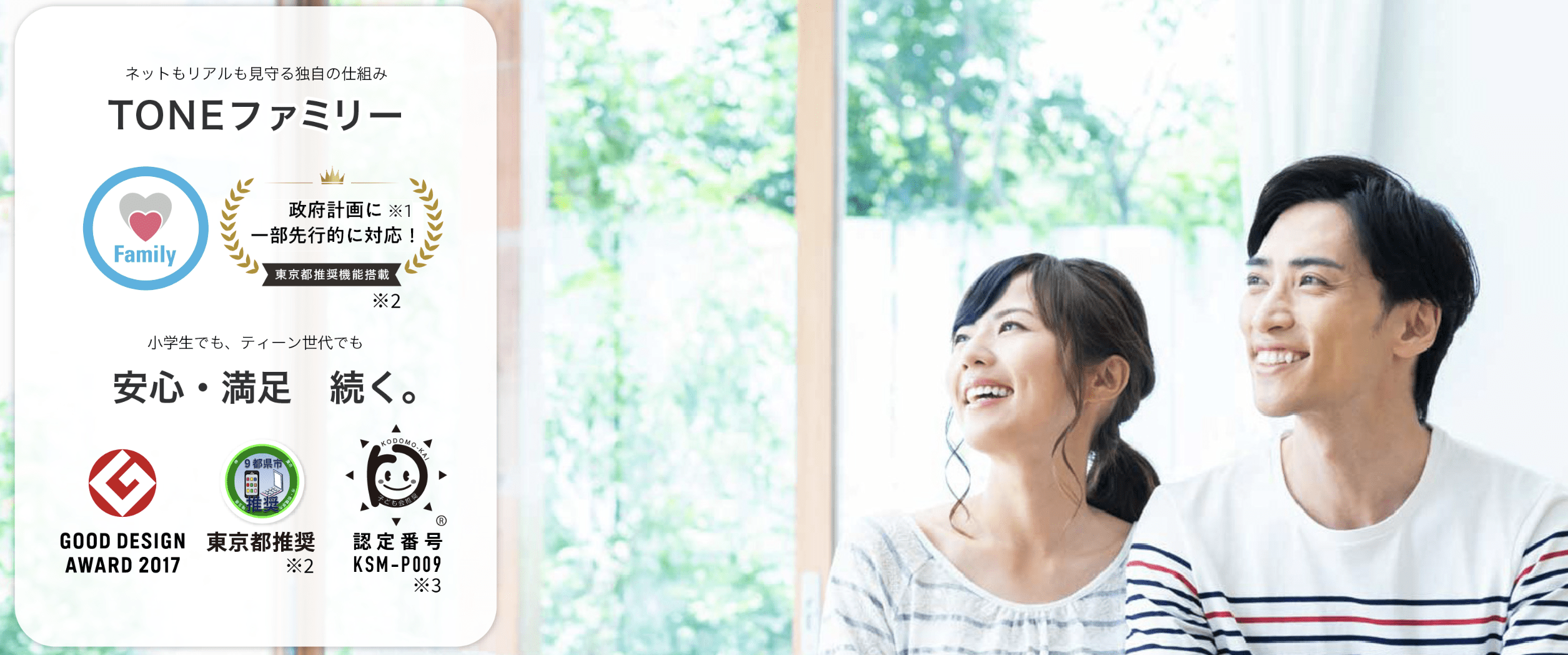 日常生活だけでなくインターネット上における危険からもお子様を守ってくれる「TONEファミリー」というオプションがあります。