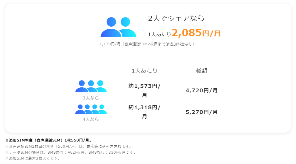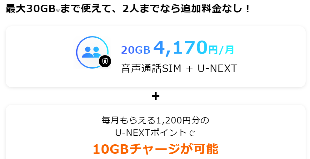 - シェアU-NEXTは、月額4,170円で20GB、U-NEXTの無料利用を2人で使える