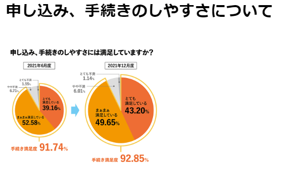 申し込みの手続きも満足度が92%ととても高くなっています。