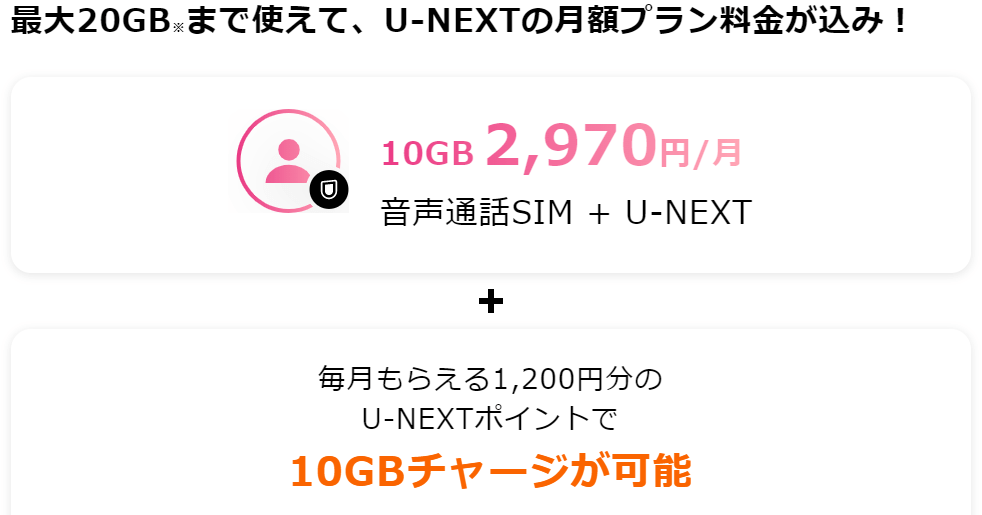 - シングルU-NEXTプランは、月額2,970円で10GBとU-NEXTの無料利用ができる
