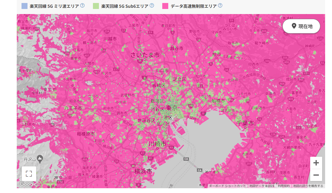楽天モバイルの通信エリアには、自前の回線と一部KDDIau回線が使用されています。2023年6月以降はパートナー回線がデータ無制限と大幅強化された最強プランがスタートしています。