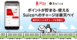 また、楽天ペイからSuicaにチャージできるのは、楽天ポイント(通常ポイント)と楽天カード(Visa、Mastercard、JCB、American Express)です。