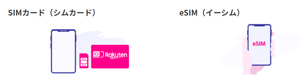 楽天モバイルのSIMカードには「マルチSIM」と呼ばれる物理SIMと、データをダウンロードするタイプの「eSIM」の2種類があります。