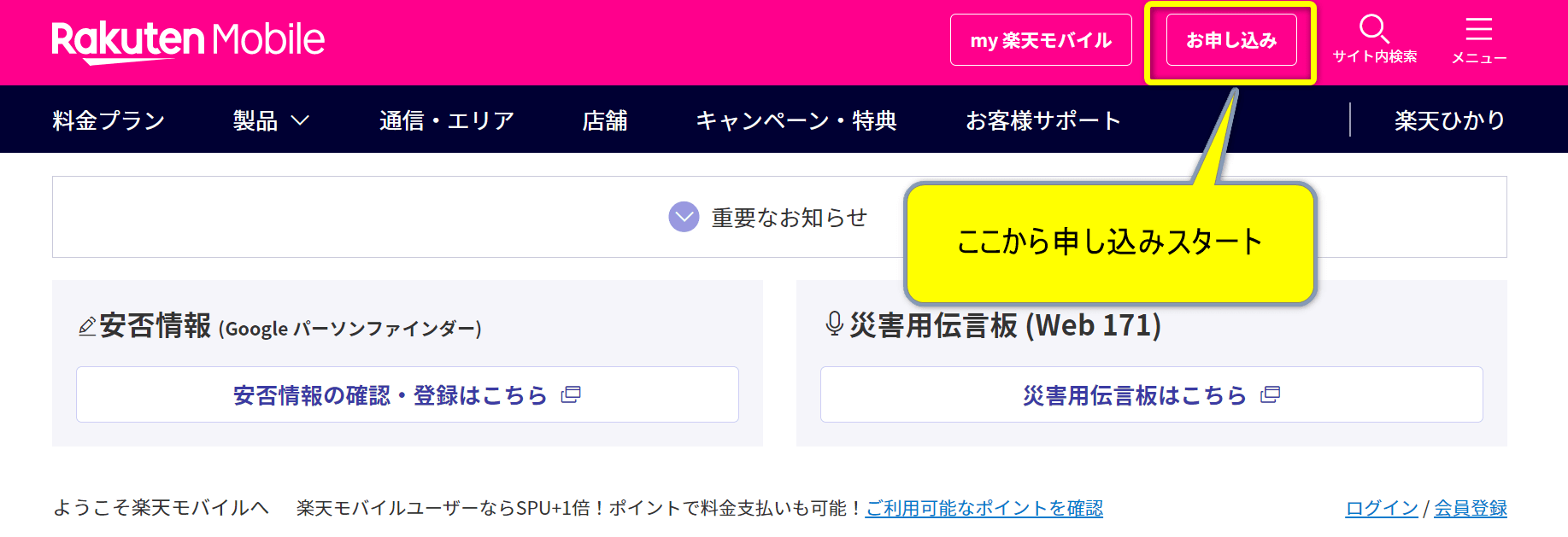 開通処理は「my 楽天モバイル」にアクセスして行います。
