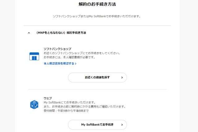 - 解約はソフトバンクショップかウェブから申し込み可能