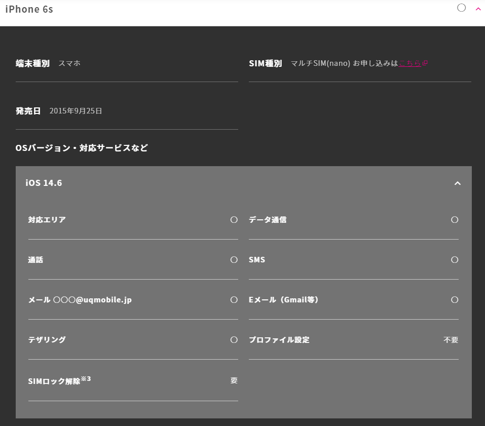 UQ mobile公式サイトの「動作確認端末一覧」から、手持ちの機種でSIMロック解除が必要かどうかを確認できます。