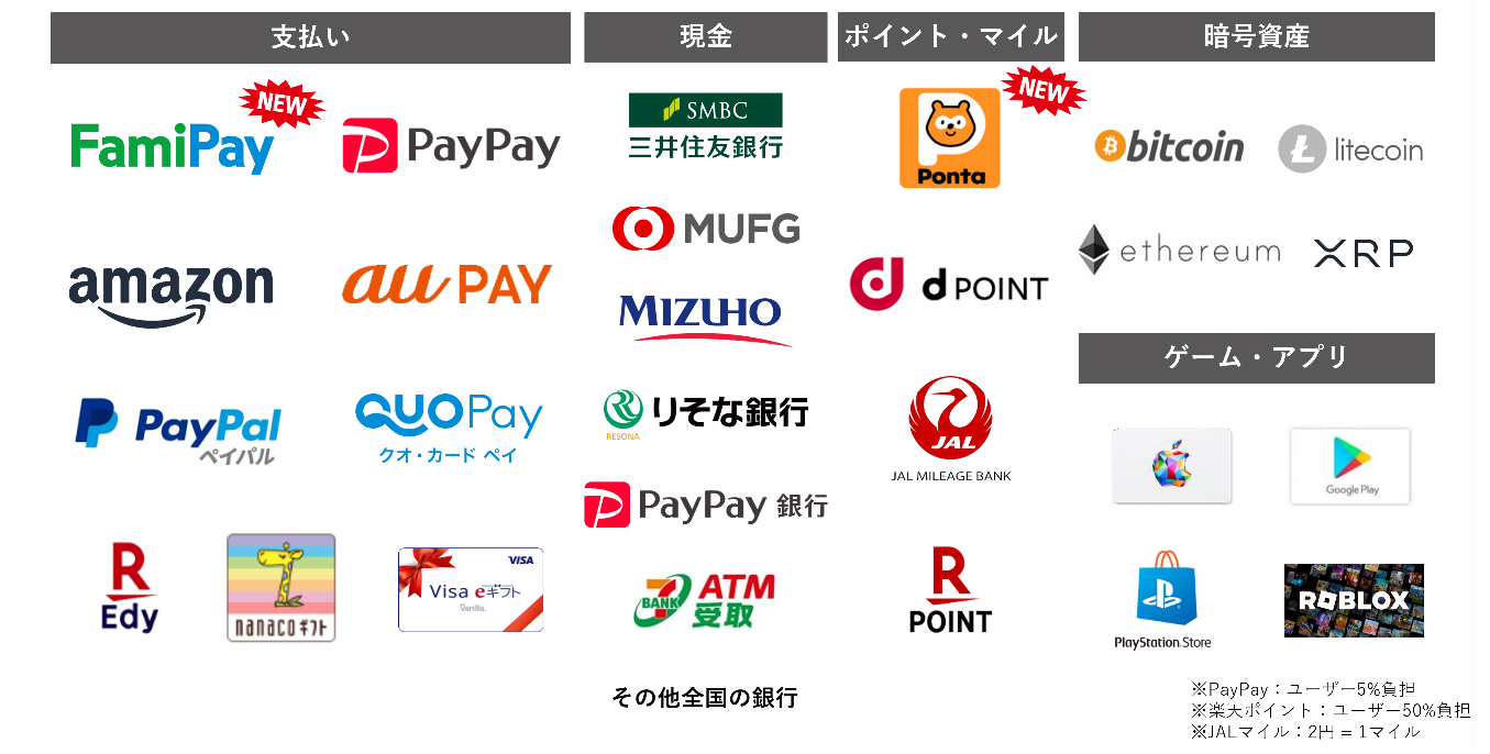 現在、5種類の暗号資産「ETH(イーサリアム)」、「BTC(ビットコイン)」、「XRP(リップル)」、「LTC(ライトコイン)」、「BCH(ビットコインキャッシュ)」はすでにご提供を開始しておりますが、今回新たに「ZPG(ジパングコイン)」、「ZPGAG(ジパングコインシルバー)」、「ZPGPT(ジパングコインプラチナ)」の3種類を受取先として追加いたします。
