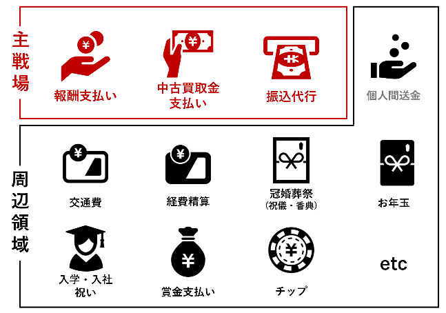 当初はトランザクションが少ない周辺領域からの先行導入により、基盤の強化と実績の積み上げを進め、主戦場となる報酬支払や中古品買取といった大規模な流通が見込まれる市場へ本格参入していきます。