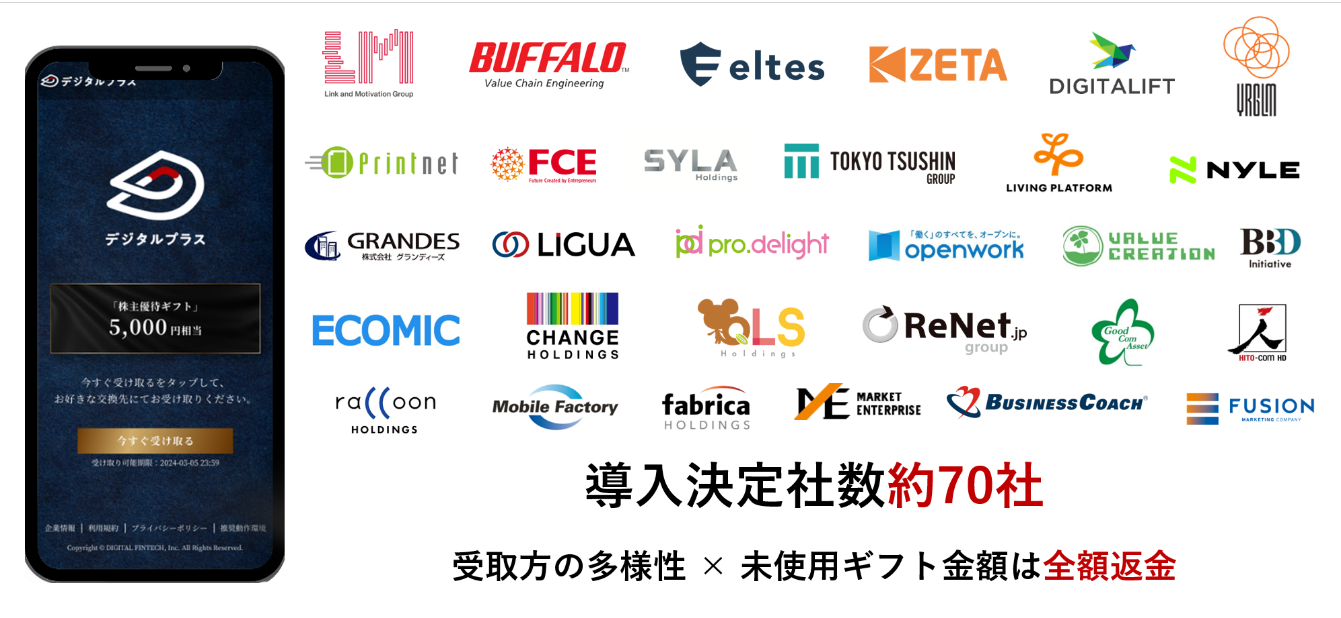 株式会社デジタルプラス(代表取締役社長:菊池 誠晃、本社:東京都渋谷区、東証グロース市場:証券コード3691)グループは、デジタルギフト®︎を活用し、企業が優待還元額を固定できる新しい仕組み「シェア型株主優待」を提供開始いたしました。