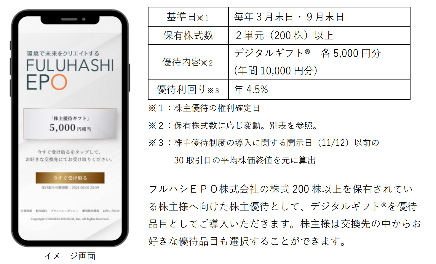 別表:フルハシEPO株主優待詳細
