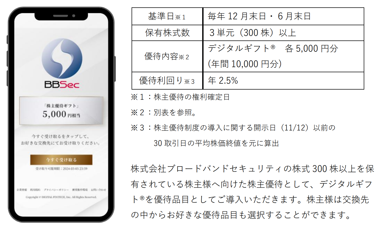 株式会社ブロードバンドセキュリティ(代表取締役社長:滝澤 貴志、東証スタンダード市場:証券コード4398)において、株式会社デジタルプラス(代表取締役社長:菊池 誠晃、本社:東京都渋谷区、東証グロース市場:証券コード3691)グループが運営する「デジタルギフト®︎」を株主優待としてご活用いただくことになりました。