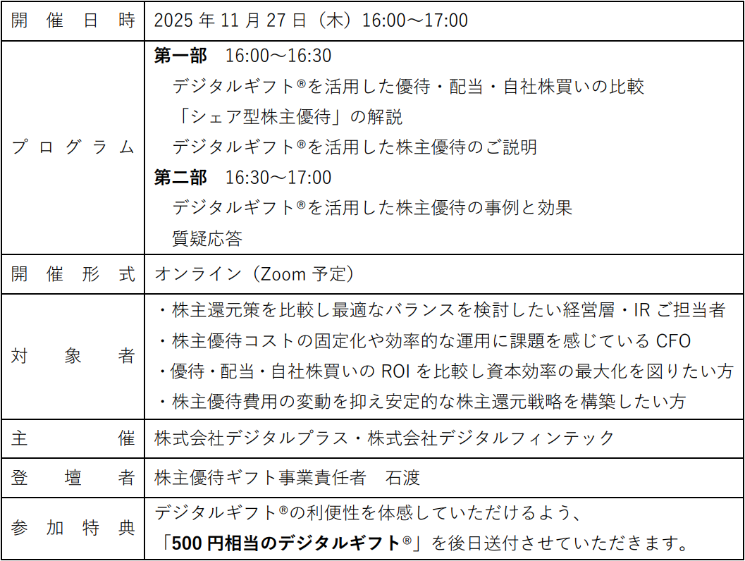 ウェビナーの後半には、登壇者への質問が可能な Q&Aセッション もご用意しております。貴社の株主還元策の見直し・検討において、ぜひ本機会をご活用ください。