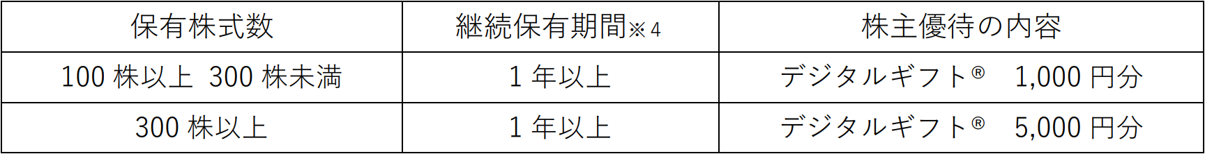 ※4:継続保有年数とは、同じ株主番号で6月30日および12月31日時点の当社株主名簿に、連続して3回以上記載または記録されていることを指します。