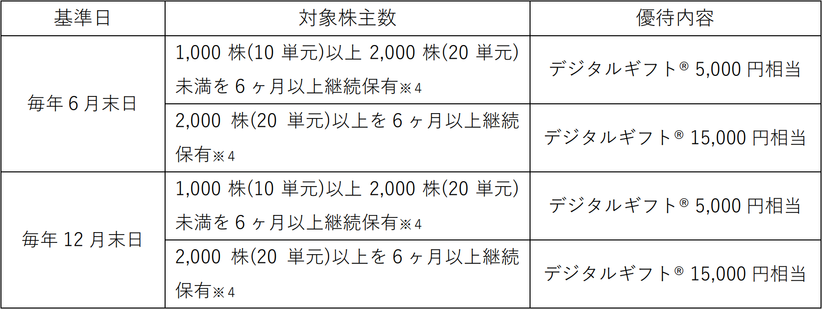 ※5:基準日(毎年6月末日及び12月末日)の株主名簿に、同一株主番号で2回以上連続して記載又は記録されることをいいます